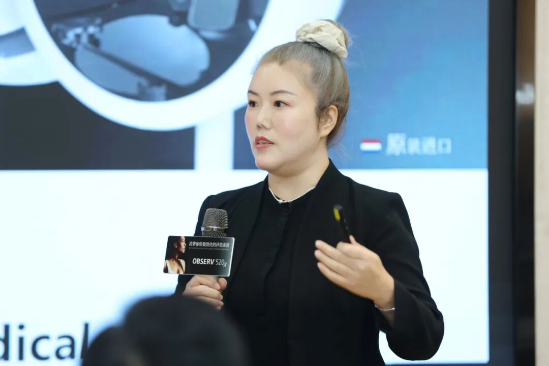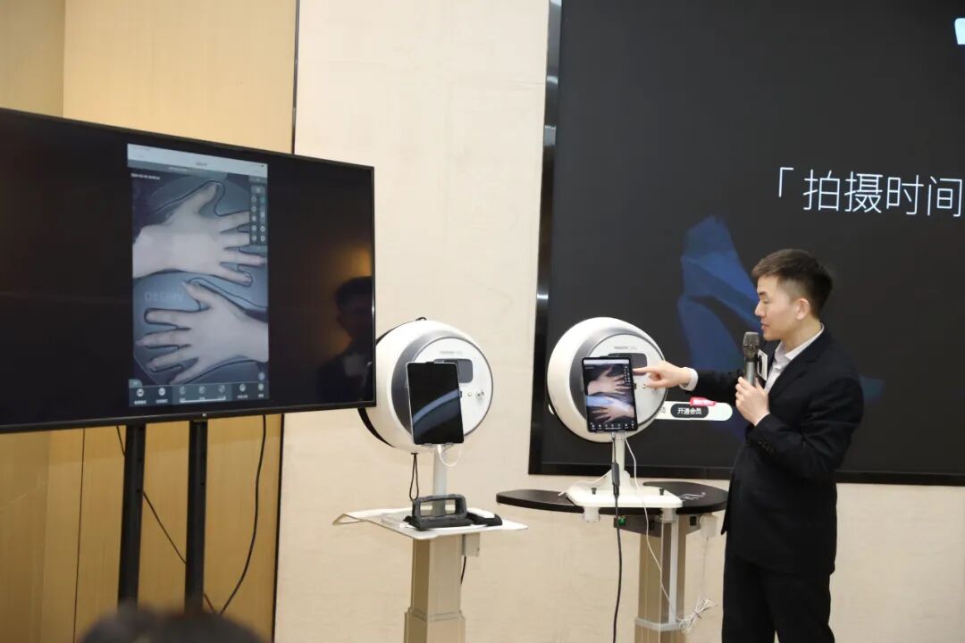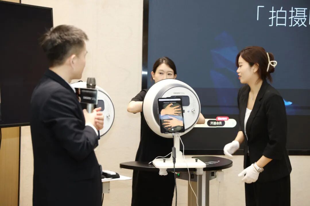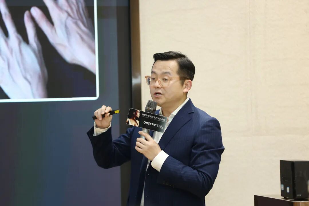 随后,亚太皮肤影像分析创始人孙踉女士重点展示了荷兰OBSERV520XAI测量国际创新技术。该技术结合了人工智能与先进的光学测量原理,能够在短时间内提供高度准确的测量数据。这一技术的推出,无疑将为多个行业带来革命性的变化。